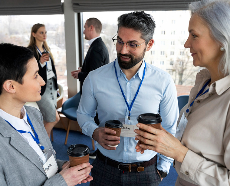 Parceiros para apoiar clientes em feiras internacionais — antes, durante e após o evento, presencialmente ou à distância.